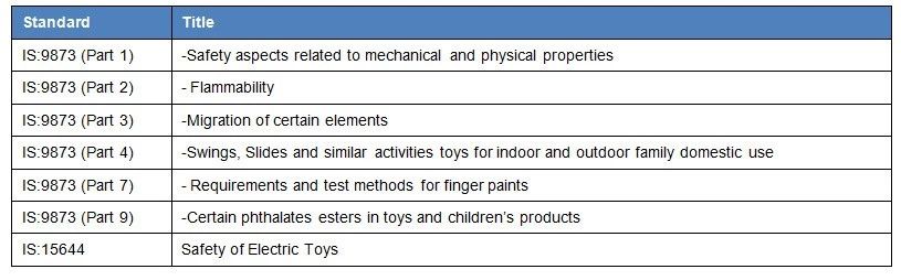 Note: The BIS (Bureau of Indian Standards) toy standards: